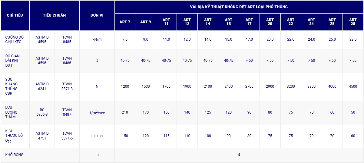 5.1. Vải địa kỹ thuật ART thông thường