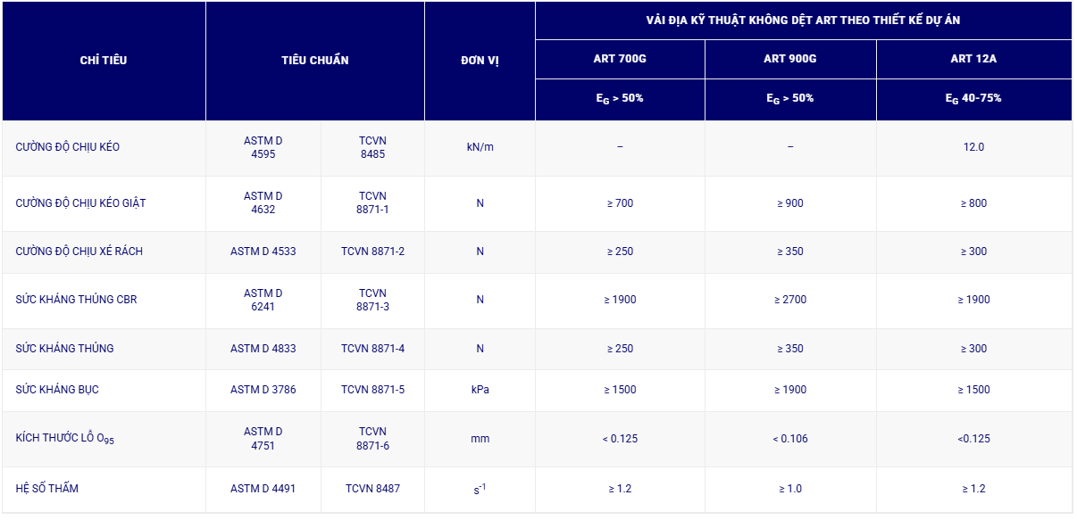 5.1. Vải địa kỹ thuật ART theo thiết kế của dự án